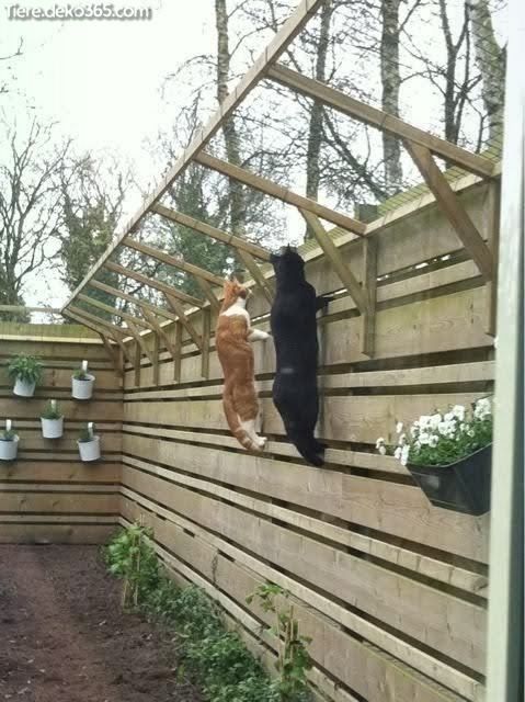 We build catios and yard enclosures with overhead netting or inward-angled toppers and tight bottom gaps.